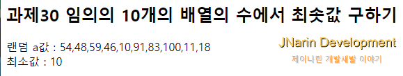 <h2>과제30 임의의 10개의 배열의 수에서 최솟값 구하기</h2>