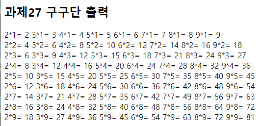 <h2>과제27 구구단 출력</h2>