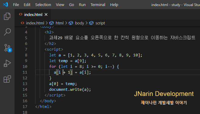 과제 29. 배열 요소 오른쪽으로 한 칸씩 이동하는 자바스크립트